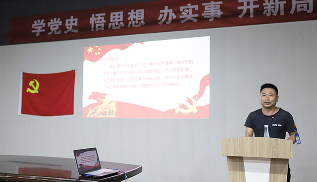 在此次黨史學習會上,西迪黨支部書記吳小琴同志帶領全體黨員一起重溫入黨誓詞,黨員同志高舉右拳,面向黨旗莊嚴宣誓,神圣而莊嚴的時刻,讓我們作為中國共產黨的一分子由衷的感覺到驕傲。